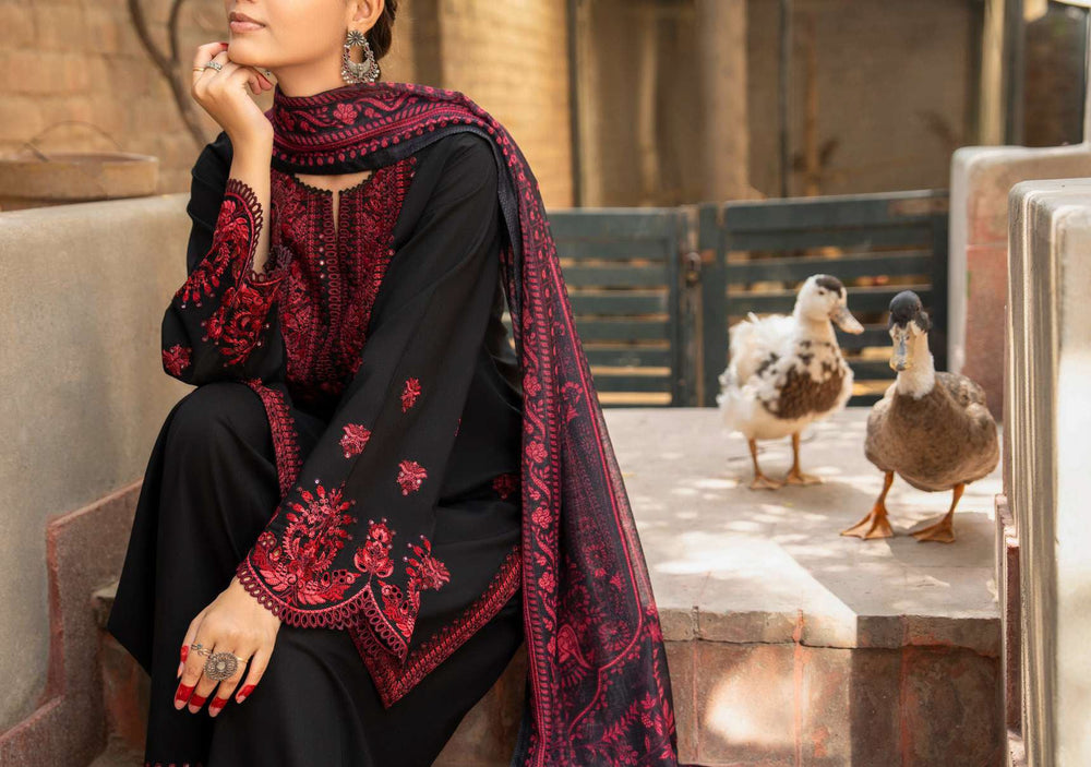 Elevate your festive wardrobe with Ember Dusk, a timeless 3-piece lenin suit that beautifully blends grace and sophistication. The jet-black canvas is adorned with intricate red embroidery, creating a striking contrast that embodies elegance. Perfect for Eid gatherings or evening soirées, this outfit ensures you stand out with poise and style.